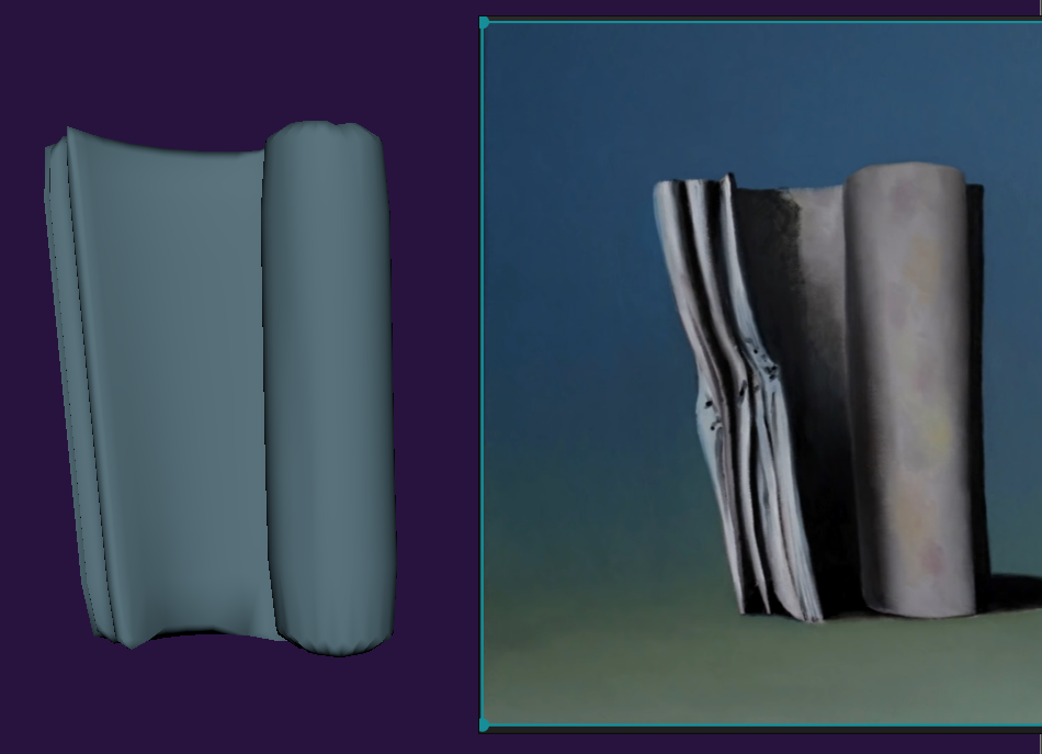 Progress would slow slightly over the Christmas period, but I was still able to get some smaller parts done around the project, such as making the brain on par with the rest of the objects, flipping its norms, as well as getting the final painting ready that will be used for the end of the scene.