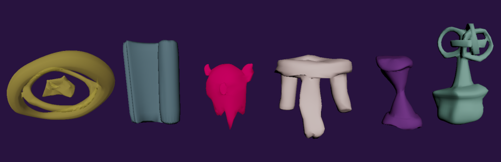 I decided to keep up with the creation of the abstract objects, and just started to create the initial ones that would spawn into the environment. These would consist of various shapes that have been morphed into somewhat tangible objects similar to the likes of Ivan seal, as to give the user enough of a sense of familiarity for them to take a guess at what the object might be, but not enough as to keep them guessing at what the object might be.