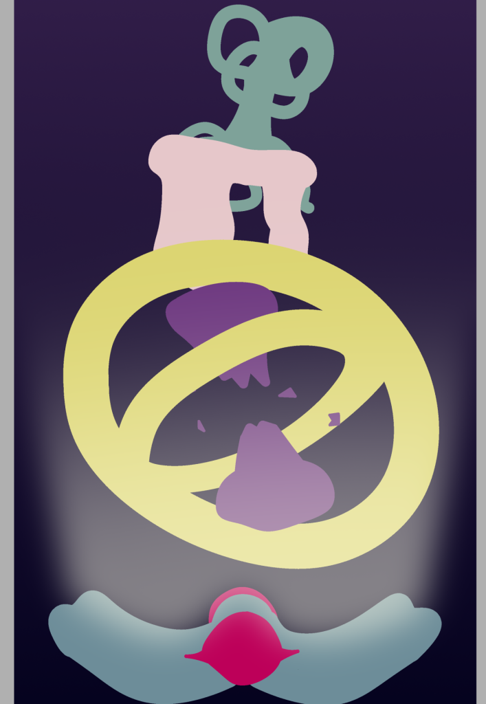 Each of the objects were drawn and then adjusted into a position I believed would fit with the design that I was going for. I then made the background a faint purple to dark blue gradient, and added a light to the bottom merged object to give it a more unique flare to it.