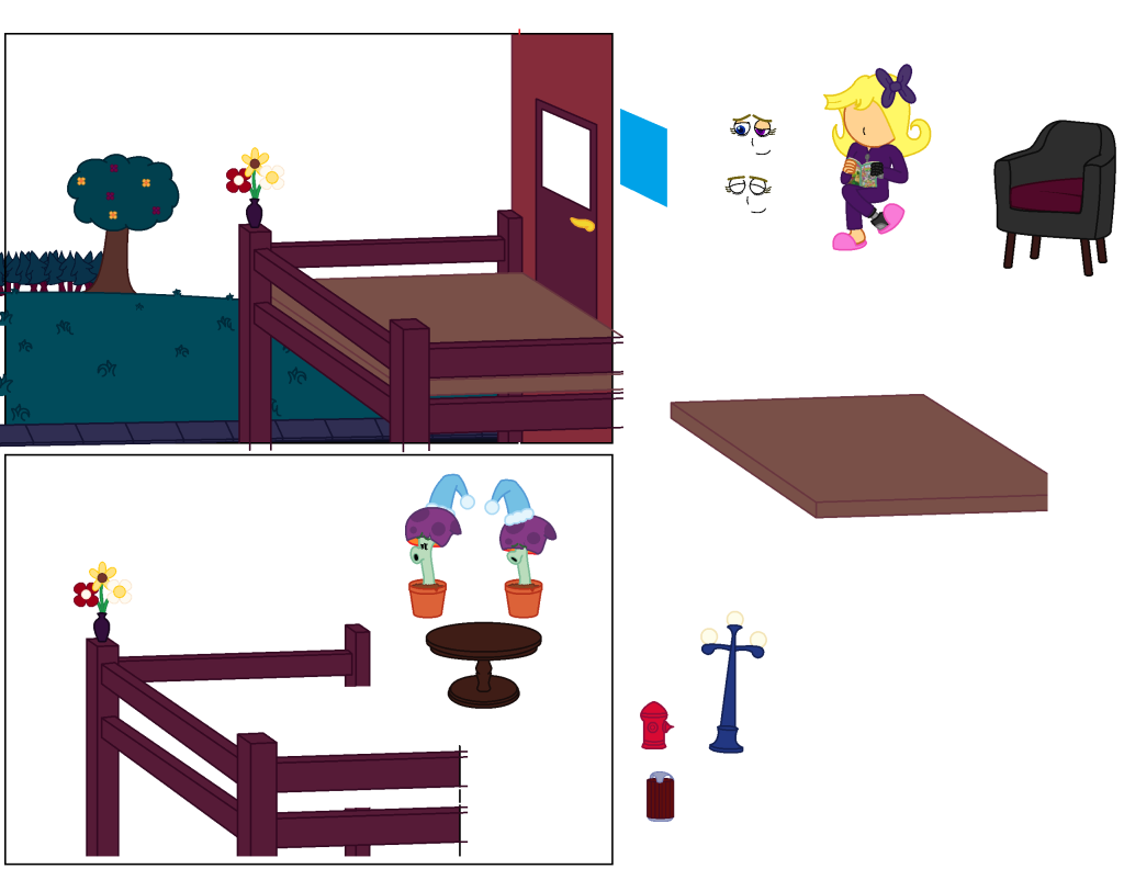 This is the image in its full form, and clearly from observation, one can tell that a lot of objects are overlapping (ie, the plant in the plant pot, the character sat in the chair, etc). This would be difficult to do by default in MsPaint, since the program as previously mentioned, does not have layers or any form of transparency.