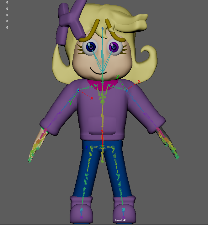 Whilst I hadn’t set up anything in regards to blend shapes or the mouth & eye textures, I decided to give the model a quick animation test in attempting a basic walk cycle, which would be established and done in another blog, as to ensure that this one is not clogged with anything (since frankly, I think this one is definitely long enough).