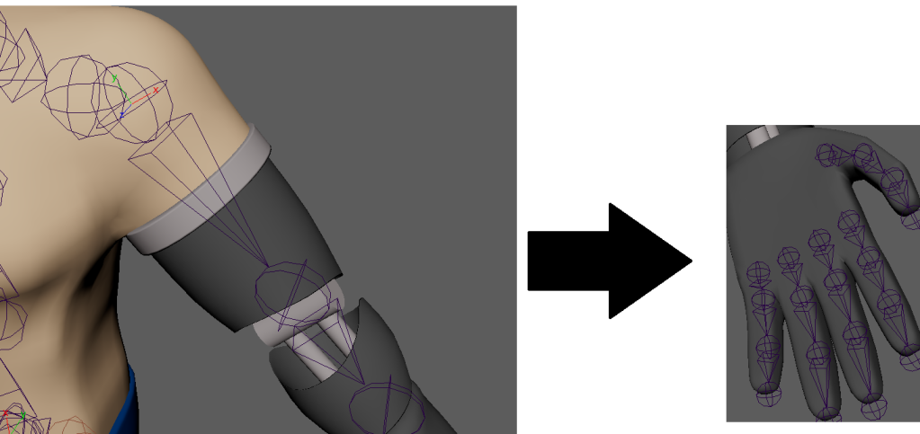 This process would then be mirrored over to the hand for the same reason as before, saving time in not having to remake the exact same limb again, but for the other side.