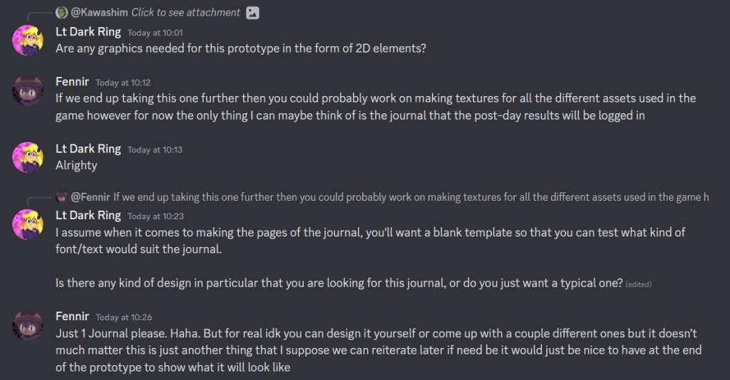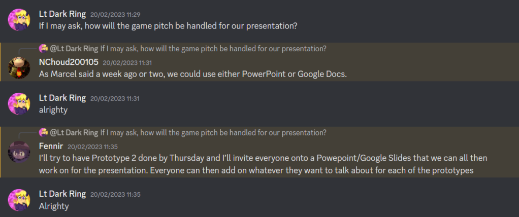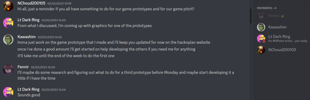 We also established a discord group chat between us, as to communicate idea’s and concepts efficiently amongst each other.