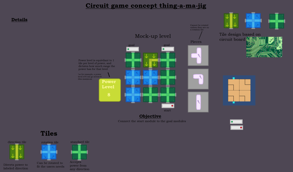 The first idea that was discussed, was of a circuit board like game, where the player would be tasked in connecting one end of the circuit board to the other, or in simple terms, connect a path from point A to point B. A fairly simple concept, but with some unique and interesting mechanics, it could have the potential to become a fully fledged product.