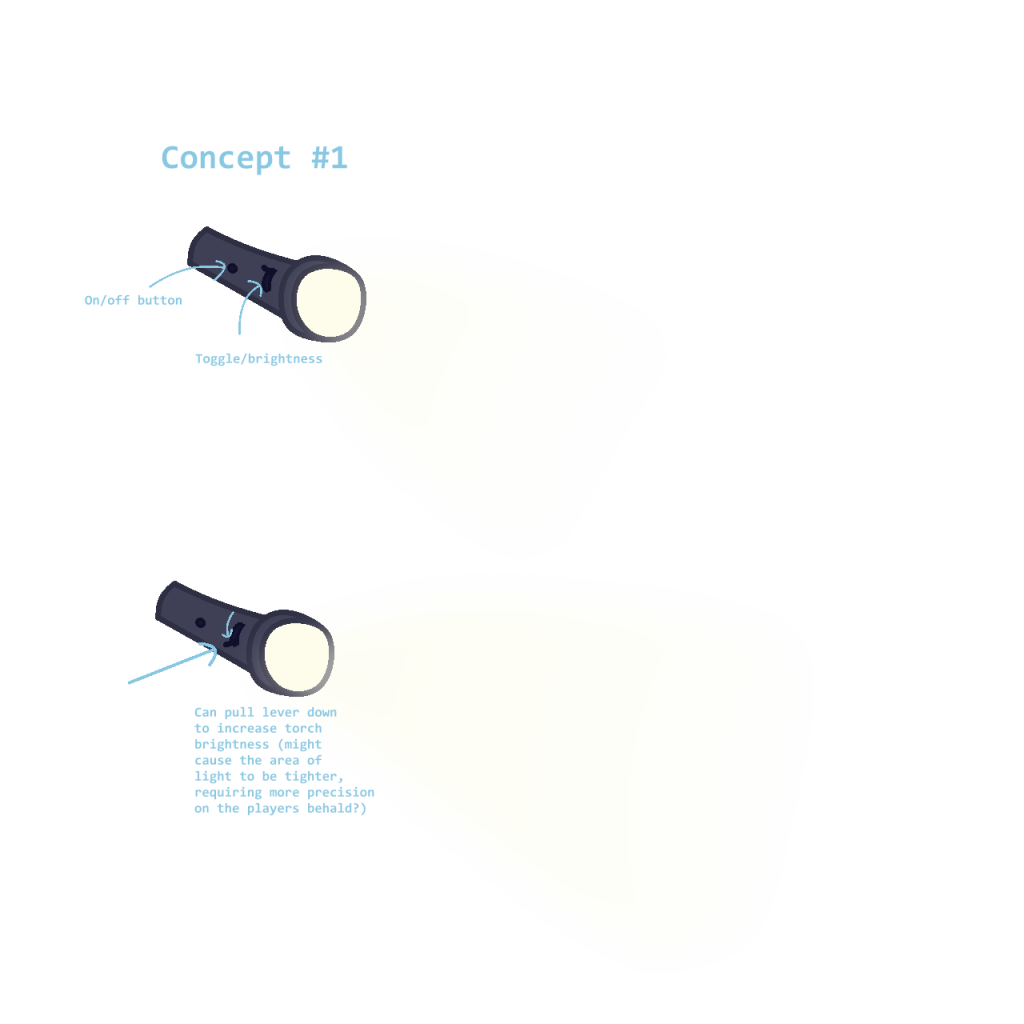 I eventually conjure up these two designs that the team could use for the flashlight within the game.