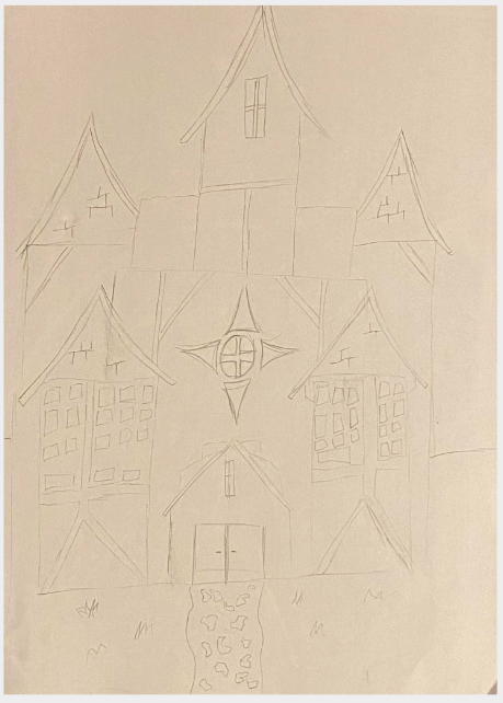Cohen (2023) A sketch of concept art for the environment of our game in the major project assignment course [Photograph] Available Online: https://docs.google.com/presentation/d/14sFqBzXBO42ESRafabxmgK2spgY0_l2LbMqF5iEs6Gc/edit?usp=sharing [Accessed 14/11/2023] [Fig.03]