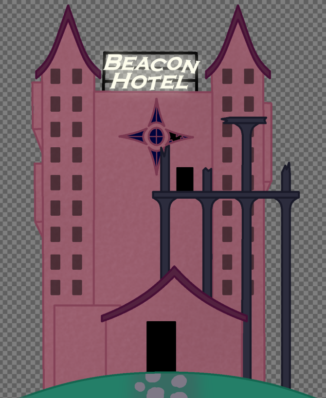 I then took the same colours from the older design with some minor hue shifts, and applied them to the newer design, giving it a more unique appearance. I also decided to add a few clipping group layers as to make the building appear noticeably older in terms of age, by making it slightly darker in some spots. Clipping groups were used as to make the process slightly cleaner and not have the canvas be general messy.