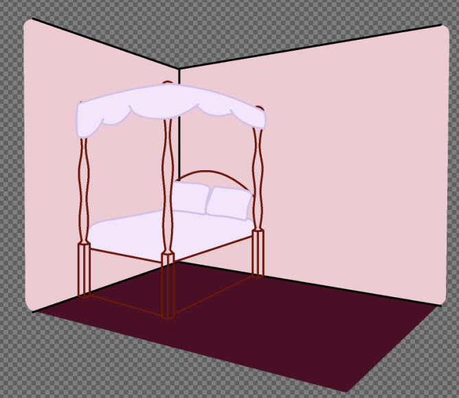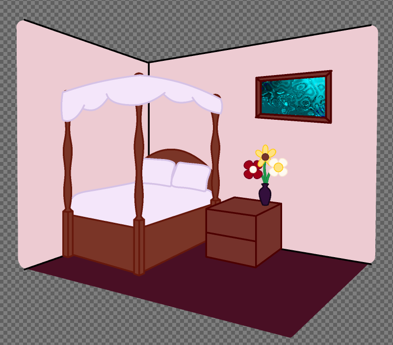 I began work on concept art for different kinds of rooms that could be used for the game, starting with a general design for a bedroom, with a few objects placed about to populate the room, and give it a more life like appearance.
